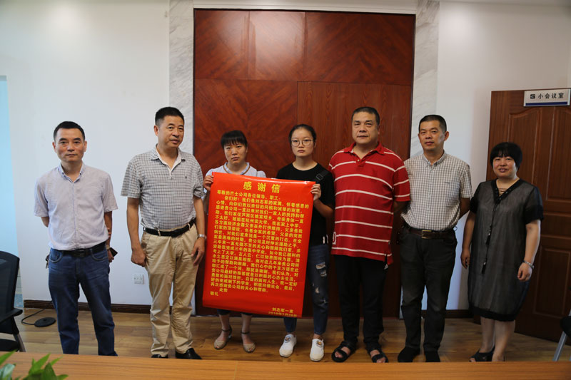 如今姐姐劉斯敏已經(jīng)順利大學(xué)畢業(yè),妹妹劉慧敏今年又考上了湖南文理學(xué)院。8月21日上午,劉志軍的妻子帶著準(zhǔn)大學(xué)生劉慧敏特意來(lái)到公司,感謝領(lǐng)導(dǎo)的多年栽培和資助,并送上感謝信?偣军h委書(shū)記總經(jīng)理肖長(zhǎng)江、工會(huì)主席彭蒙等領(lǐng)導(dǎo)一行熱情接待了她們,并鼓勵(lì)她珍惜來(lái)之不易的求學(xué)機(jī)會(huì),堅(jiān)定理想信念、樹(shù)立遠(yuǎn)大目標(biāo)、常懷感恩之心,努力學(xué)習(xí)、奮力拼搏,以優(yōu)異的成績(jī)、過(guò)硬的本領(lǐng),回報(bào)公司的關(guān)愛(ài)之情、期頤之心,并交代巴士公司以后還要跟蹤服務(wù),大學(xué)期間如有什么特殊問(wèn)題公司將一如既往的幫扶到底。