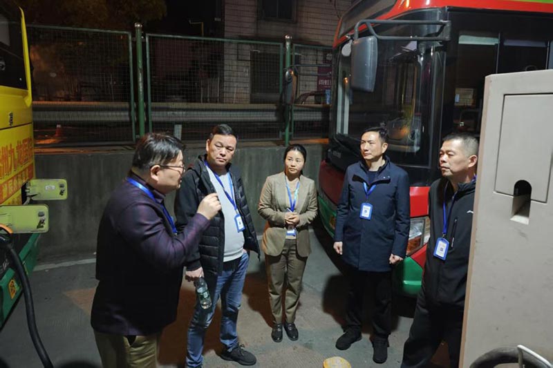 4月5日深夜,為貫徹落實集團《關(guān)于轉(zhuǎn)發(fā)〈2025年全市汛期暑期交通運輸安全生產(chǎn)重大風險隱患排查整治行動工作方案〉的通知》(株公交安辦〔2025〕31號)和《關(guān)于做好清明節(jié)期間安全防范工作的通知》(株公交安辦〔2025〕33號)文件精神,切實做好清明節(jié)前(節(jié)中)安全生產(chǎn)工作,集團副總經(jīng)理黃治峰帶隊到新能源公司建寧大橋南、高家坳、天元橋東、匯通金港等充電站開展節(jié)中充電運營安全生產(chǎn)工作督查。