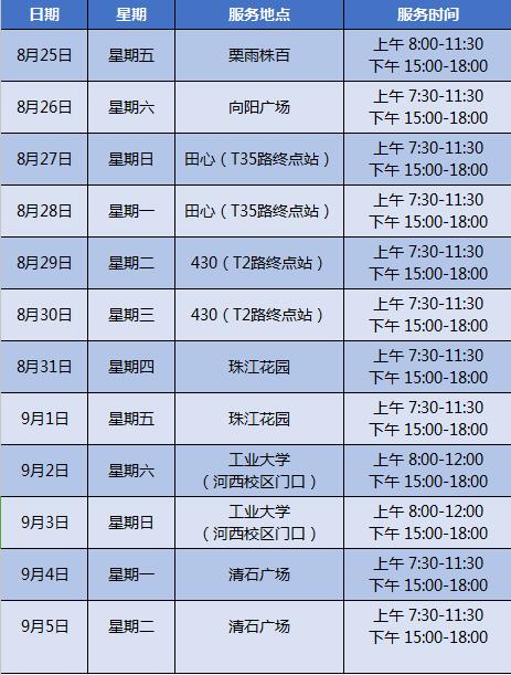 8月25日至9月5日株洲公交IC卡流動(dòng)充值車(chē)將服務(wù)栗雨株百、向陽(yáng)廣場(chǎng)、田心、430、珠江花園、工業(yè)大學(xué)、清石廣場(chǎng)等區(qū)域,有需要的市民朋友,可以就近辦理辦卡和充值哦~