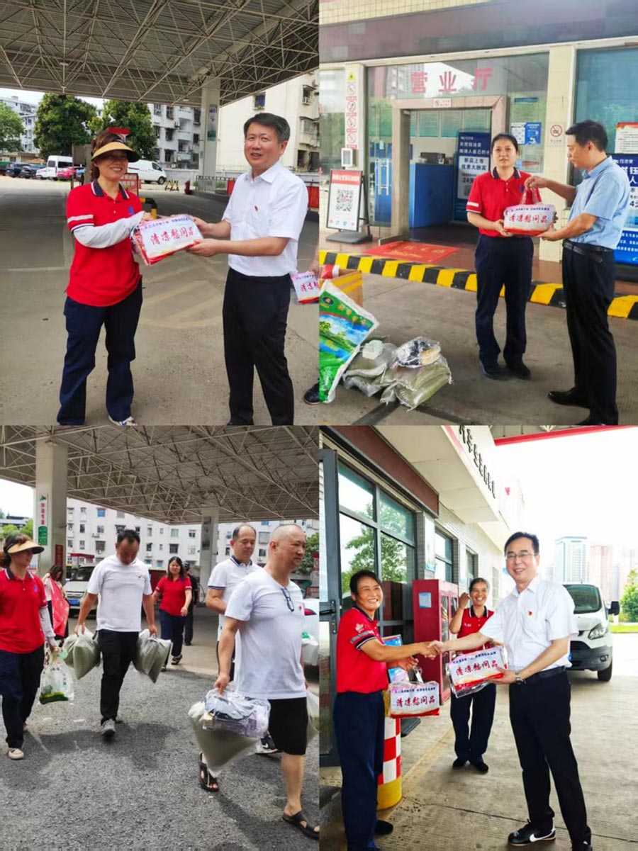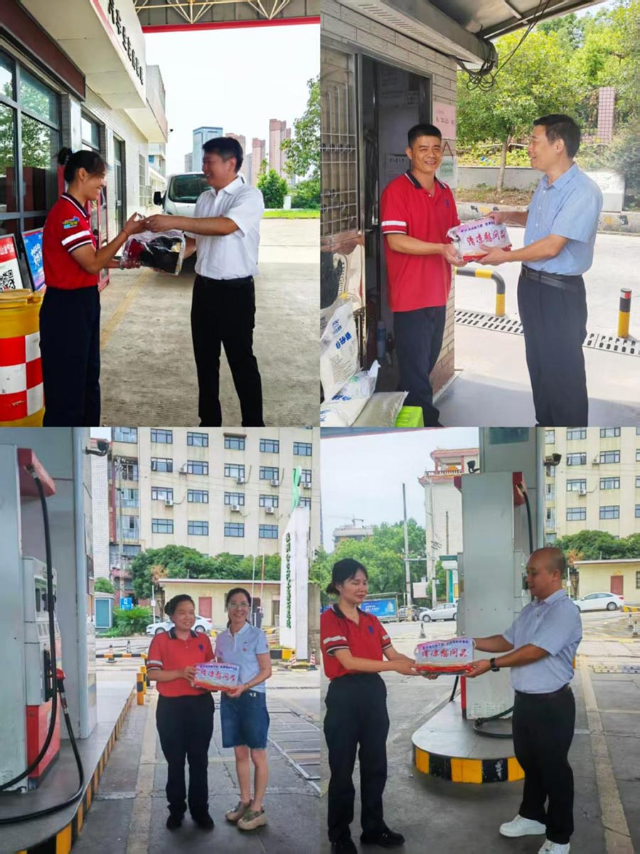 在金山油站、晏家灣油站,送清涼小分隊(duì)將"清涼慰問禮包"、防暑物資逐一送到員工手中,張敏書記反復(fù)叮囑加油員們:"天氣炎熱,一定要注意防暑降溫,適當(dāng)休息,確保自身安全!"