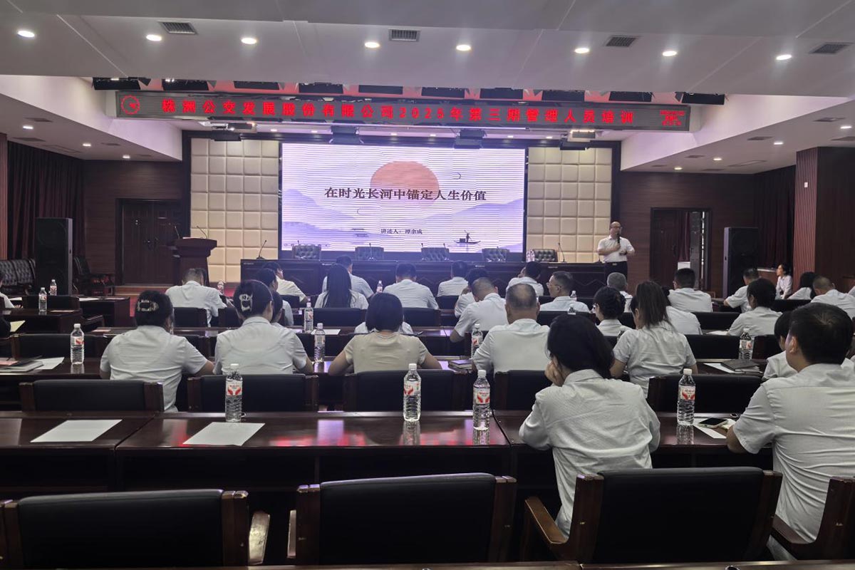 7月23日,公交發(fā)展公司以《在時(shí)光長河中錨定人生價(jià)值--關(guān)于人生、責(zé)任與職業(yè)價(jià)值的對(duì)話》為主題,開展第三期管理人員培訓(xùn)。發(fā)展公司、公務(wù)車公司領(lǐng)導(dǎo)班子及全體管理人員參與,發(fā)展公司總經(jīng)理譚余成主講。