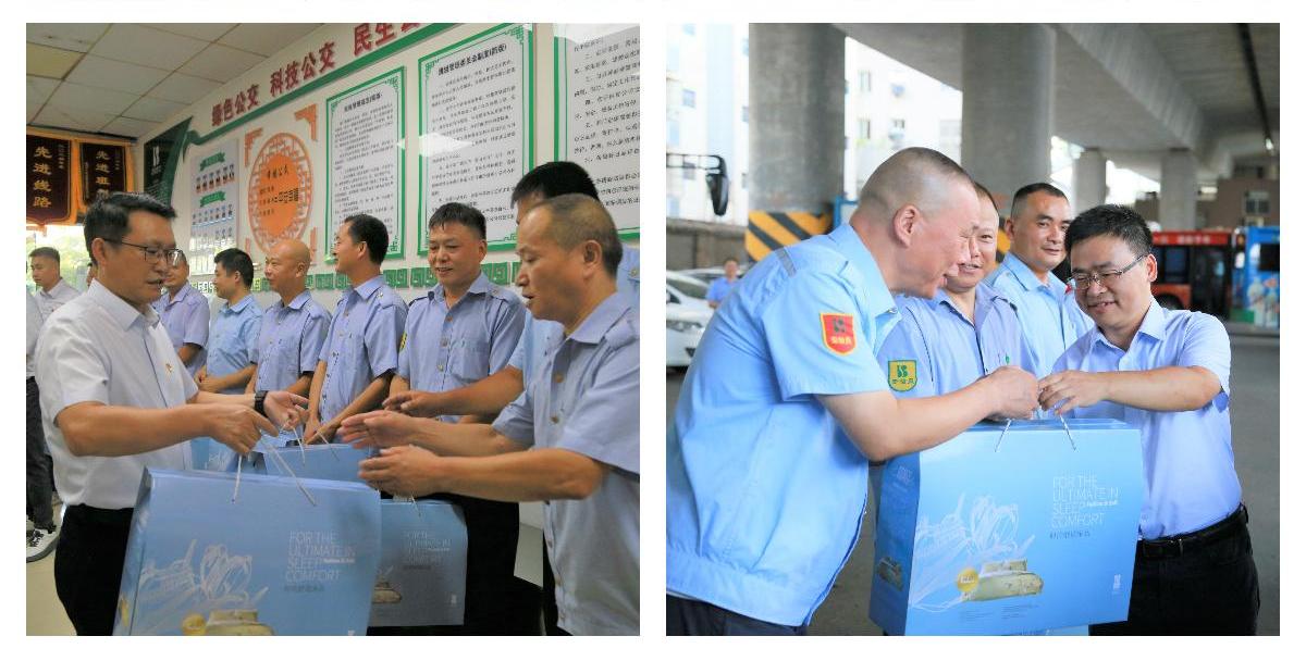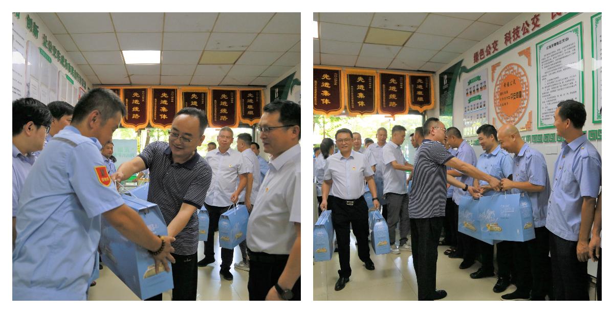 活動當(dāng)天,集團(tuán)黨委副書記、總經(jīng)理譚劍平、巴士公司領(lǐng)導(dǎo)班子及各職能部門負(fù)責(zé)人,前往各個公交線路站點(diǎn)看望、慰問堅守工作崗位的一線職工,為他們送去清涼物資和暖心關(guān)懷。每到一處,公司領(lǐng)導(dǎo)都向職工們致以親切慰問,提醒他們在高溫環(huán)境下務(wù)必做好防暑措施,增強(qiáng)自我保護(hù)意識,確保身體健康,為公交的穩(wěn)定運(yùn)營提供有力保障。