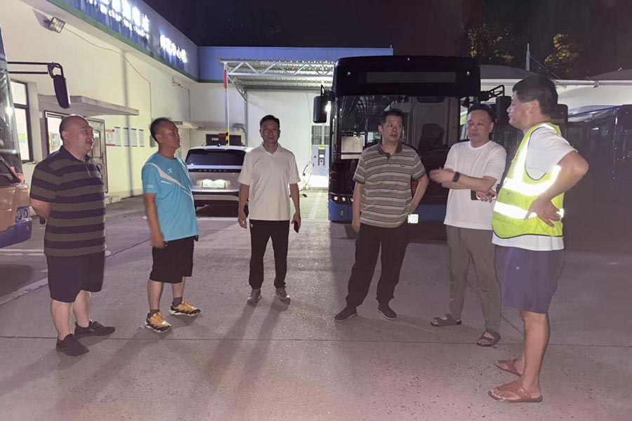 8月1日是湖南省新分時電價實施的第一天,同時也是公交夜間充電移車工作轉交的第一天。為落實公交充電保障,當天深夜,集團副總經(jīng)理黃治峰以"四不兩直"的方式,到新能源公司體育中心、建寧大橋北、建寧大橋南等充電站開展公交充電現(xiàn)場調研和工作督查。