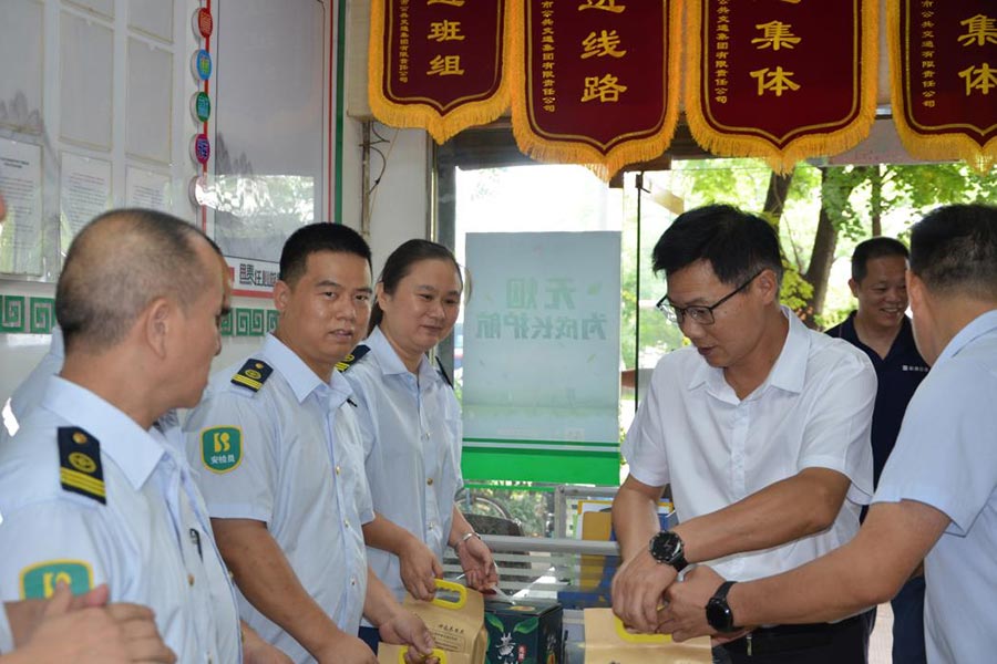 8月11日上午,市公交集團(tuán)組織開(kāi)展夏日"送清涼"活動(dòng),集團(tuán)黨委書(shū)記、董事長(zhǎng)賈先才,黨委副書(shū)記、工會(huì)主席陳小玲,副總經(jīng)理曠桂生分赴公交一線,切實(shí)把清涼送到生產(chǎn)最前沿,把關(guān)懷送進(jìn)員工心坎里。