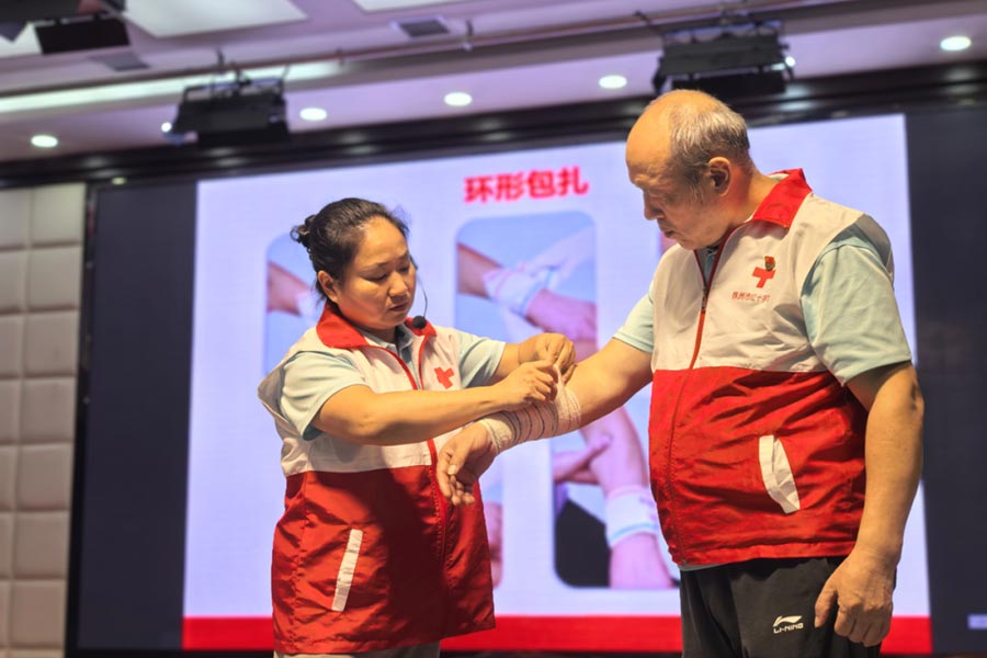 為確保培訓(xùn)質(zhì)量,本次活動特邀株洲市紅十字會“中國紅十字總會資深高級救護(hù)培訓(xùn)師”周顏與吳新華聯(lián)袂授課。其中,周顏老師擁有9年國家級急救培訓(xùn)經(jīng)驗,累計培育合格救護(hù)員超2萬人;吳新華老師專注急救領(lǐng)域8年,尤其在CPR(心肺復(fù)蘇)+AED(自動體外除顫器)專項培訓(xùn)方面具備豐富實操經(jīng)驗。兩位專家采用理論講解與模擬實操相結(jié)合的方式,系統(tǒng)傳授了創(chuàng)傷救護(hù)關(guān)鍵技術(shù)與生命救援核心技能,內(nèi)容涵蓋創(chuàng)傷止血、包扎固定、骨折搬運及燒燙傷應(yīng)急處理等實用技法,以及心搏驟?焖僮R別、高質(zhì)量心肺復(fù)蘇規(guī)范操作、自動體外除顫器使用及氣道異物梗阻海姆立克急救法等關(guān)乎生命救援的重要技能。