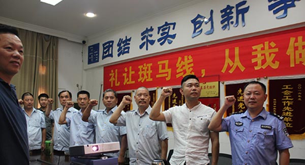 活動期間,公司制定禮讓斑馬線日提醒制,實行專項工作考核;各營運部門每周進行一次專項自檢,運管部門在每周進行一次抽檢。自活動開展的兩個月以來,共進行"禮讓斑馬線"活動專項檢查57次,檢查人次達152人次,檢查2800臺次,糾章51臺次。同時,組織部門管理人員、班組長身著反光背心、戴著"文明勸導"袖筒,站在斑馬線前,引導行人、指揮交通,維護斑馬線前的安全秩序。