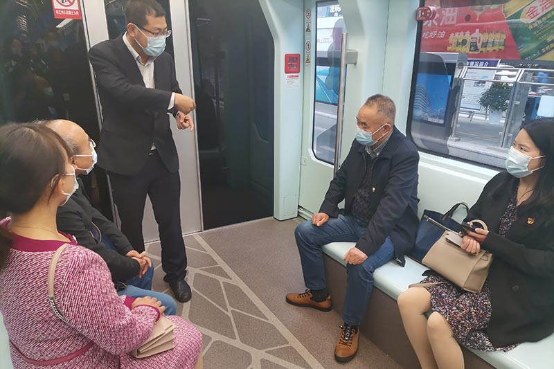 在項目現(xiàn)場,公交發(fā)展公司黨總支書記龔琴向指導(dǎo)組一行詳細介紹了智軌運營現(xiàn)狀以及乘客滿意度等情況。